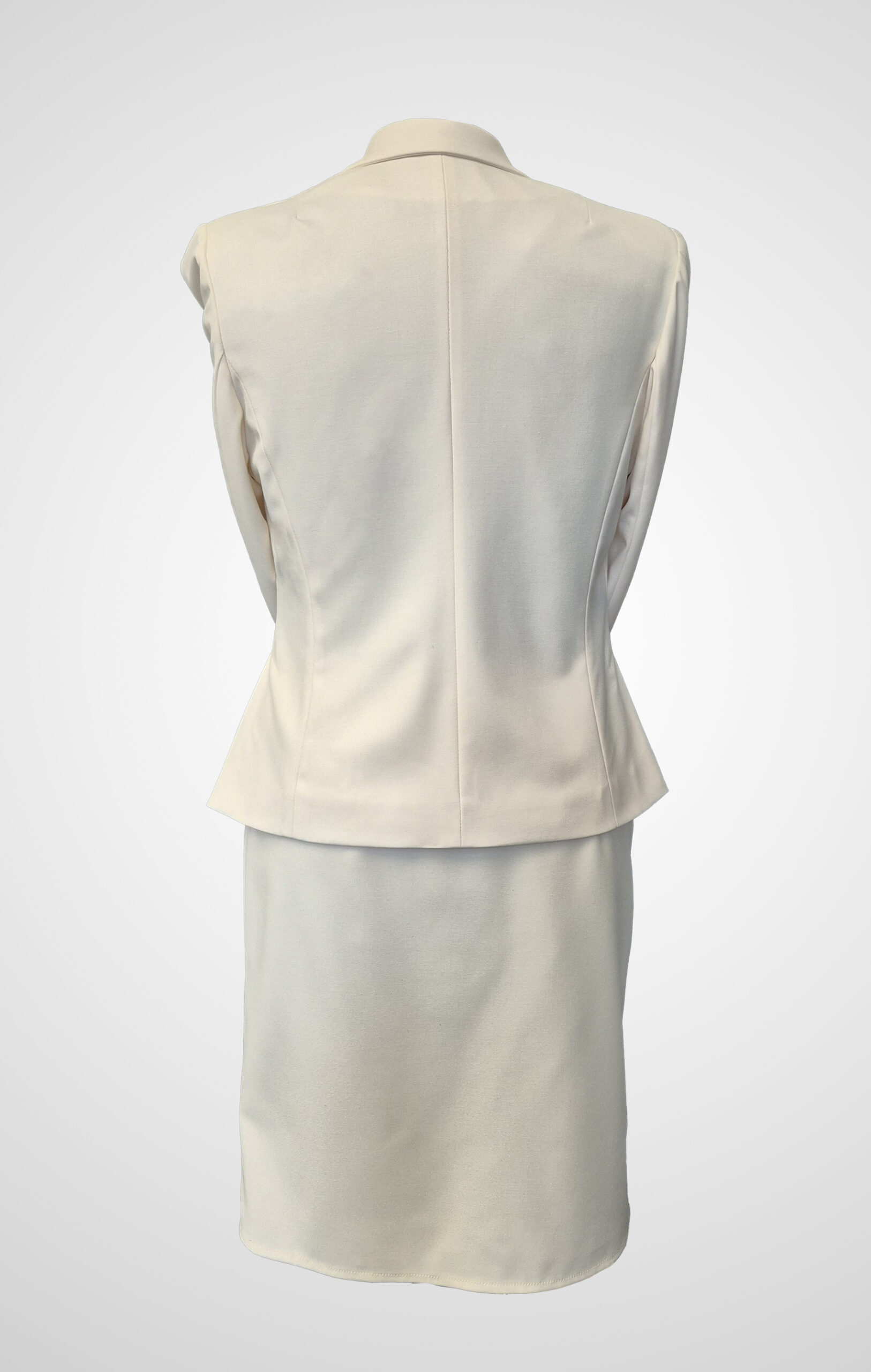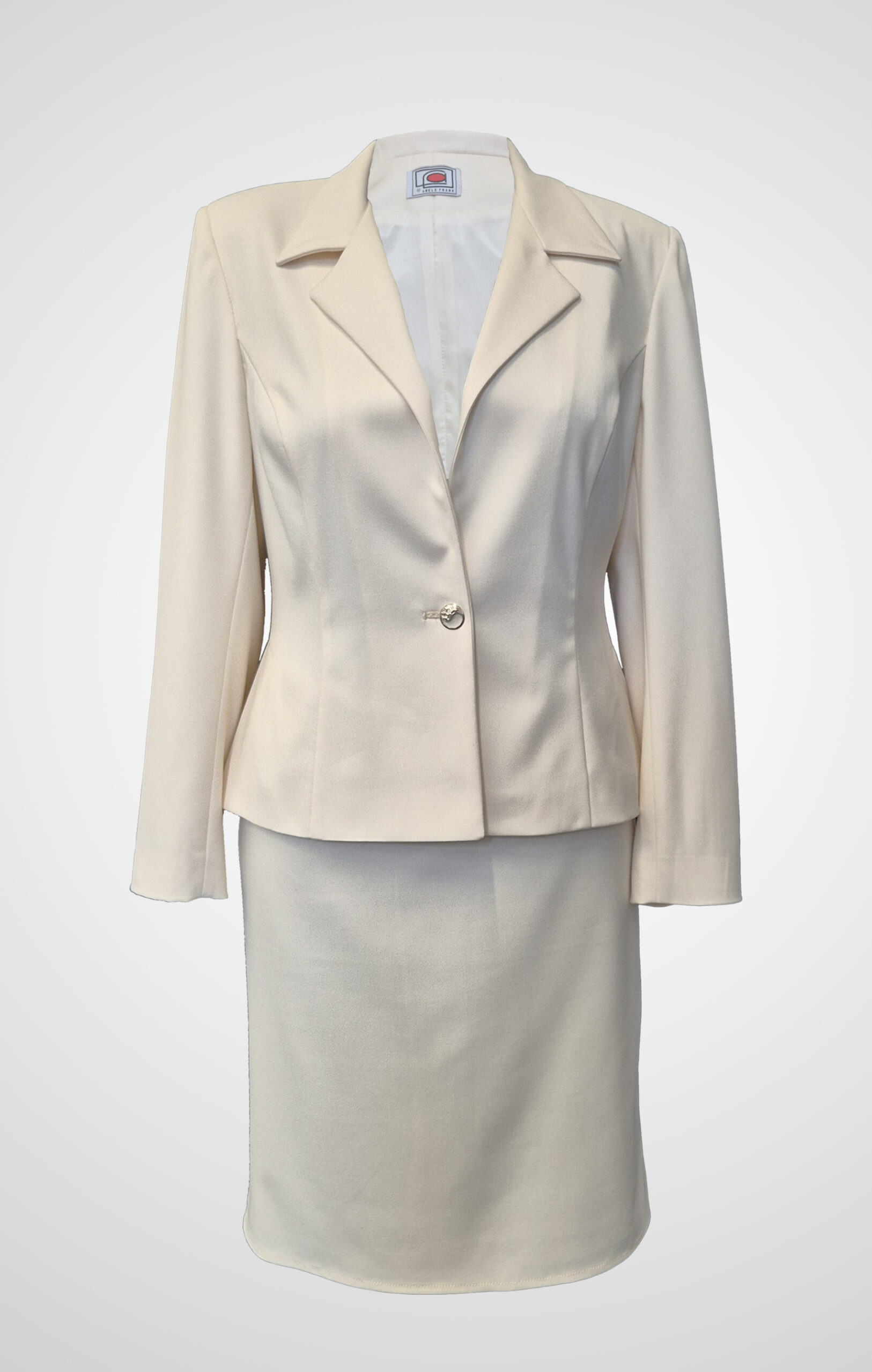 Ecru Tailored Skirt Suit with Yin-Yang Silver Button