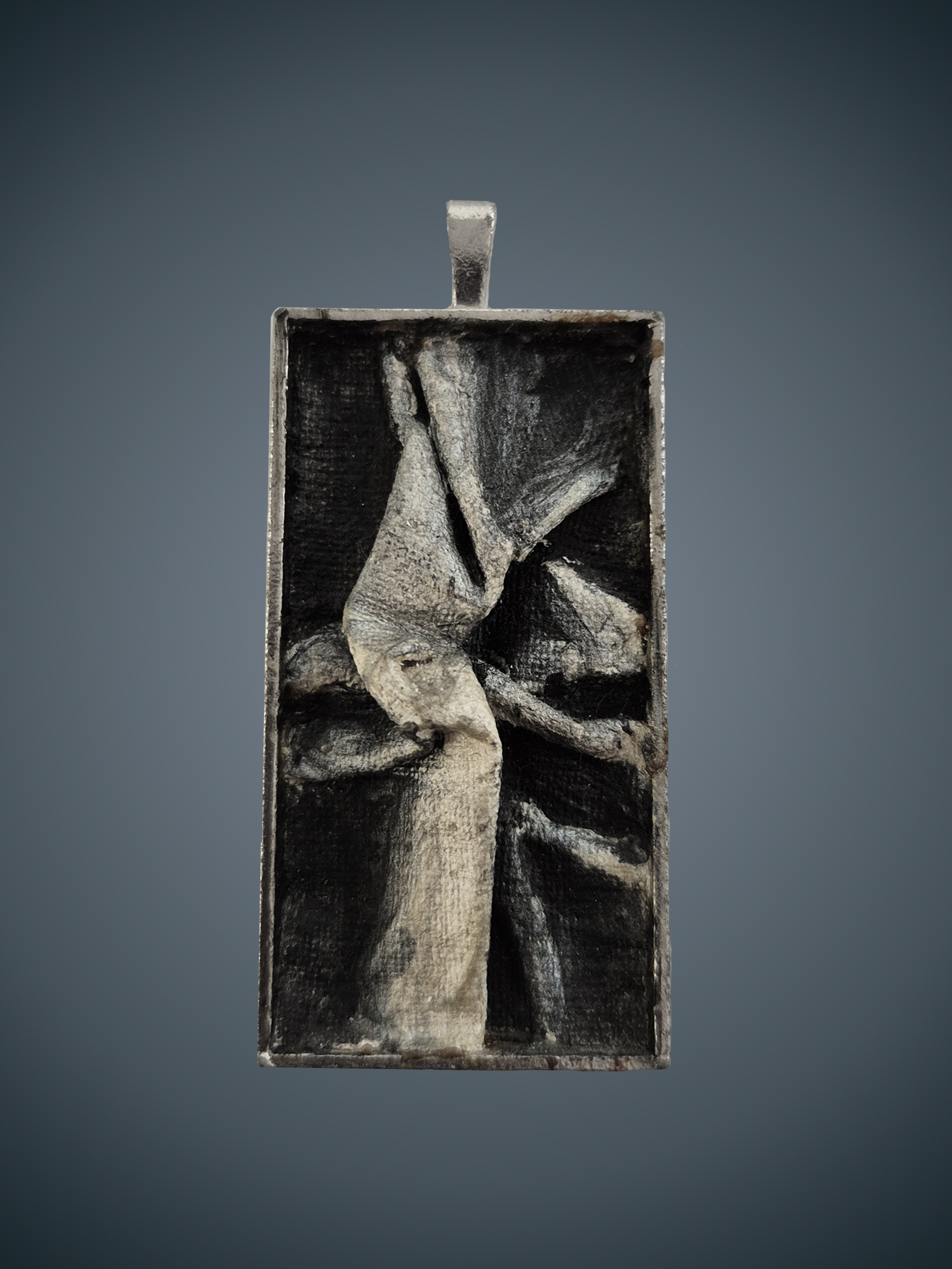 Oil on Canvas Pendant with Silver necklace