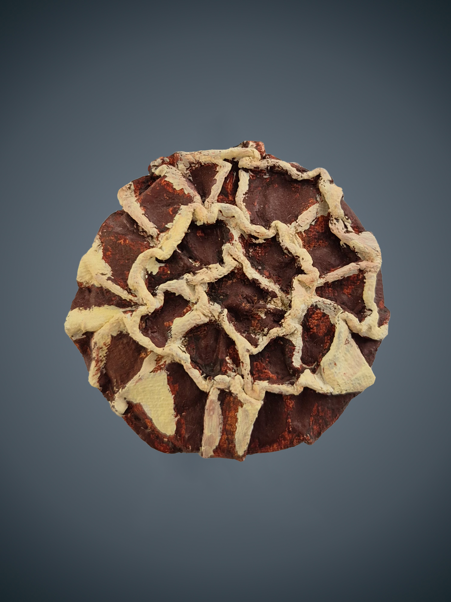 Pliora Nr°10 is a unique pendant crafted from hand-painted canvas. Suspended from a sterling silver necklace, this sculptural piece is a true work of art. It combines elegance with a one-of-a-kind design, showcasing Adele Frank’s signature craftsmanship.